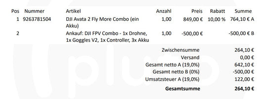 gegen eine gebrauchte DJI FPV Combo mit 3 Akkus & einer Zuzahlung von 264,10€