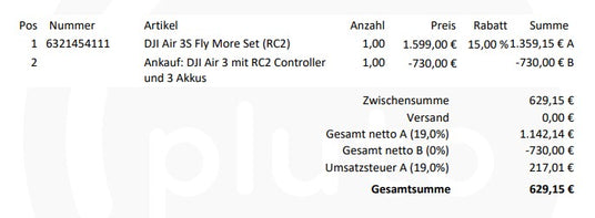gegen eine gebrauchte DJI Air 3 mit RC2 Controller mit Fly More Set & einer Zuzahlung von 629,15 €